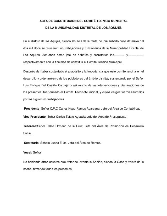 Acta De Constitucion Del Comite Tecnico Municipal