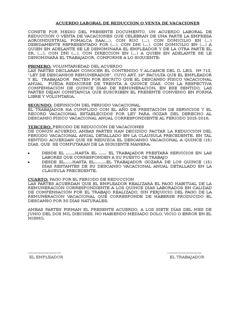 Modelo De Venta De Vacaciones Para Trabajadores De Reg Salario Gobierno
