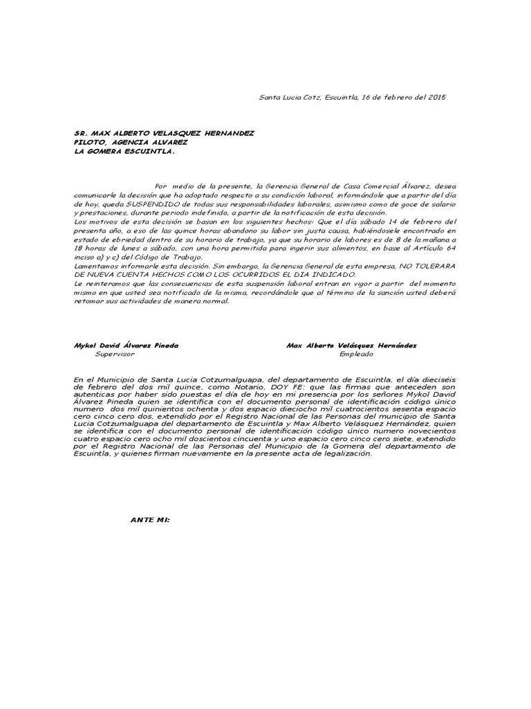 Carta De Suspension Laboral Max Velasquez Pdf Gobierno Politica
