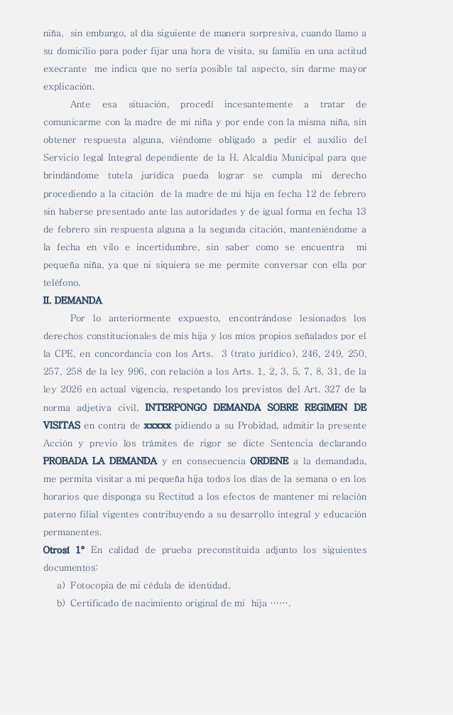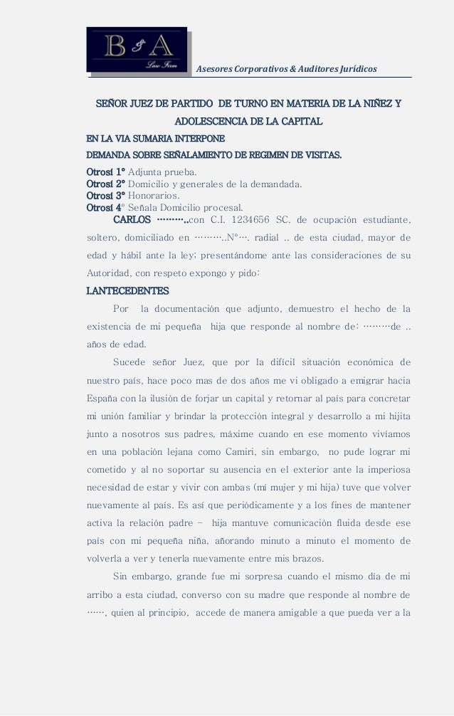 Modelo De Demanda De Regimen De Visitas Demanda Judicial Bancos