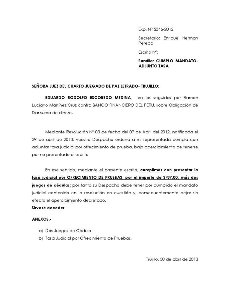 D even go. Modelo de escrito para completar la carpeta de trabajos practicos requerida para regularizar la materia. La base del clculo es sobre una cantidad fija que corresponde al tipo de proceso ms una cantidad variable que corresponde al principal de la cantidad reclamada en el proceso.