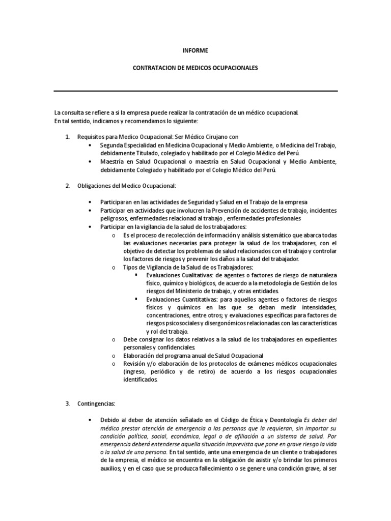 Informe Medico Ocupacional Pdf Derecho Laboral Medicina